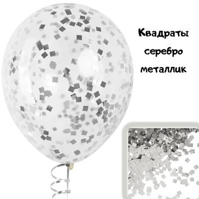 Шары с конфетти серебро металлик (квадраты)