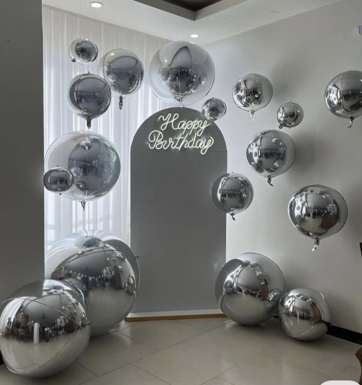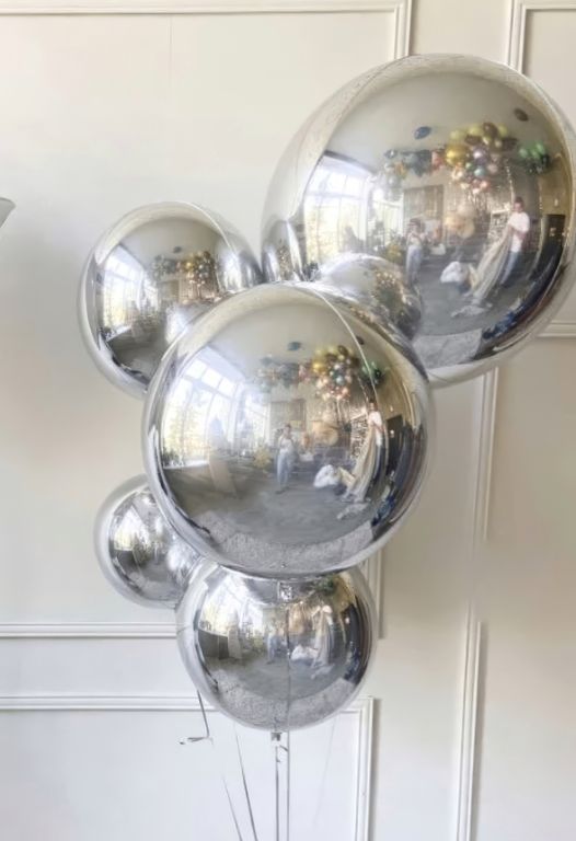 Это фольгированные шары, по стилю похожие на хром зеркальные. Они отражают предметы как зеркало. Цвета потрясающе красивые, не оставят равнодушным никого. Из них можно сделать великолепные композиции с любыми шарами, а так же сочетая их между собой. Если вы хотите, чтобы ваш праздник прошёл с блеском, то вам нужны именно эти шарики. Абсолютно круглый фольгированный 3D шар из 4 частей, с невидимыми швами, плотная эластичная пленка с металлизацией позволяет надувать шар до формы идеальной сферы без складок.