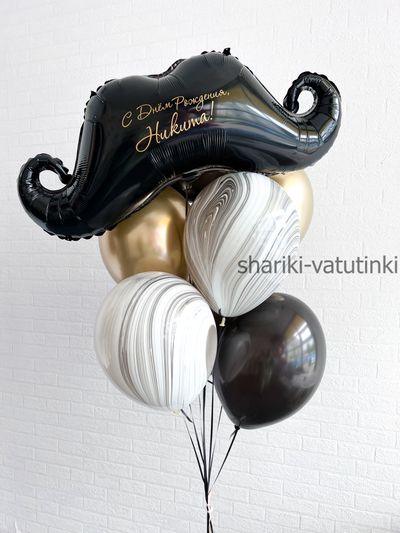 - 7 шаров (фольгированная фигура Усы с надписью, 2 агат, 2 чёрных, 2 хром золото).