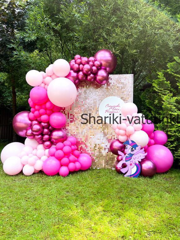 Оформление шарами детского праздника фотозона с пайетками Пони