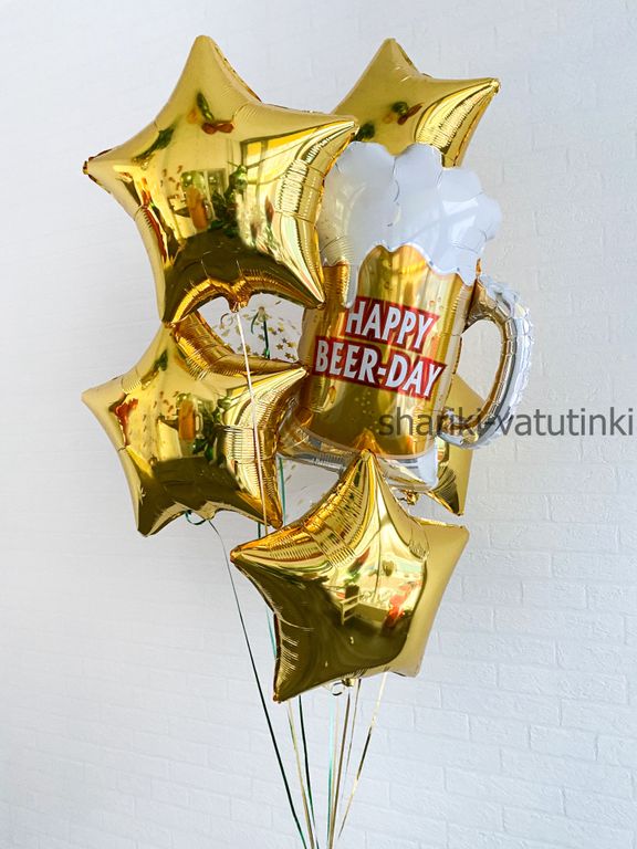 - фольгированная фигура кружка пива, 5 звёзд, 3 с конфетти).