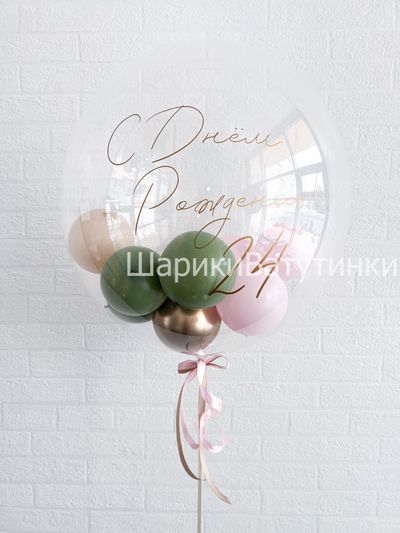 Шар баблс с шариками внутри и индивидуальной надписью смотрится стильно, как в одиночестве так и в композициях.