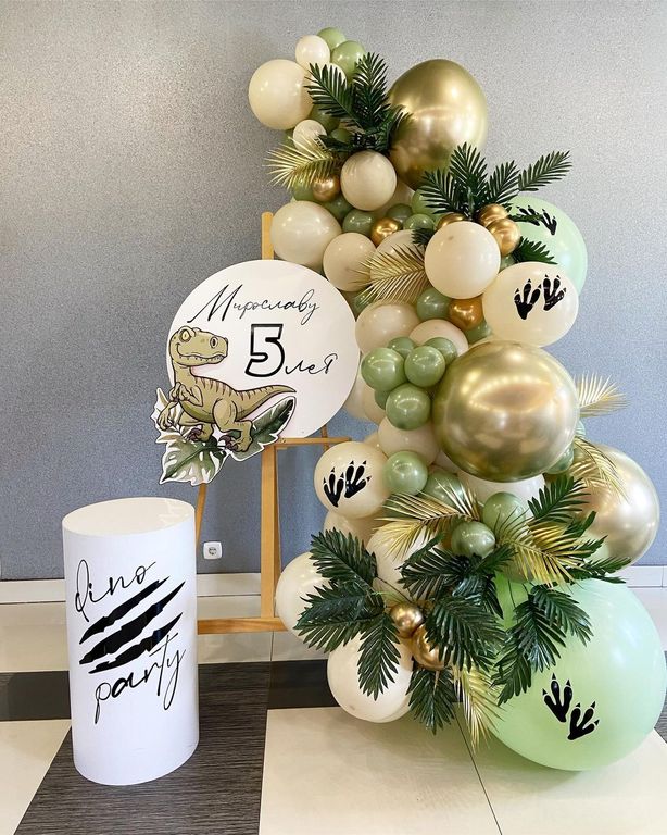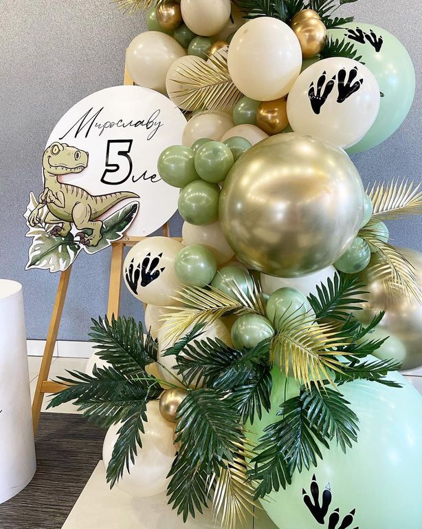 - гирлянда из шаров 2,5 метра, пальмовые веточки (прокат), наклейки-лапы;