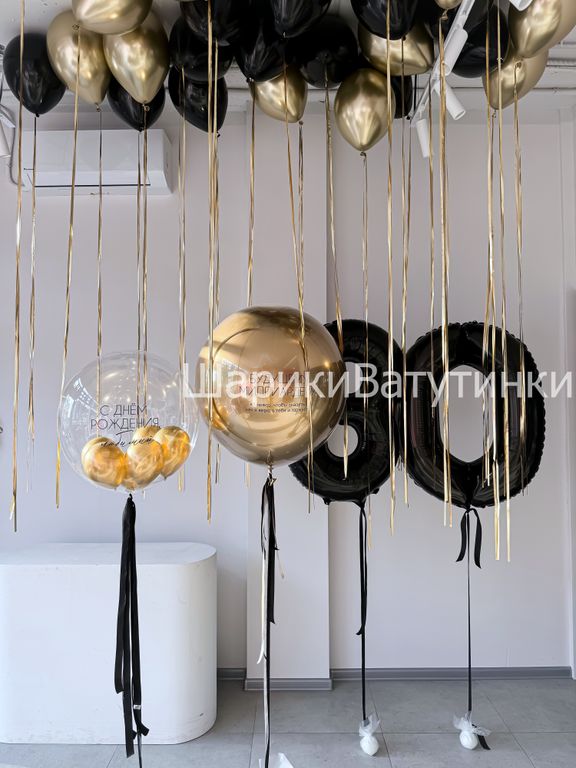 - под потолок 30 шарв с дожликом (10 золото хром, 20 черных)