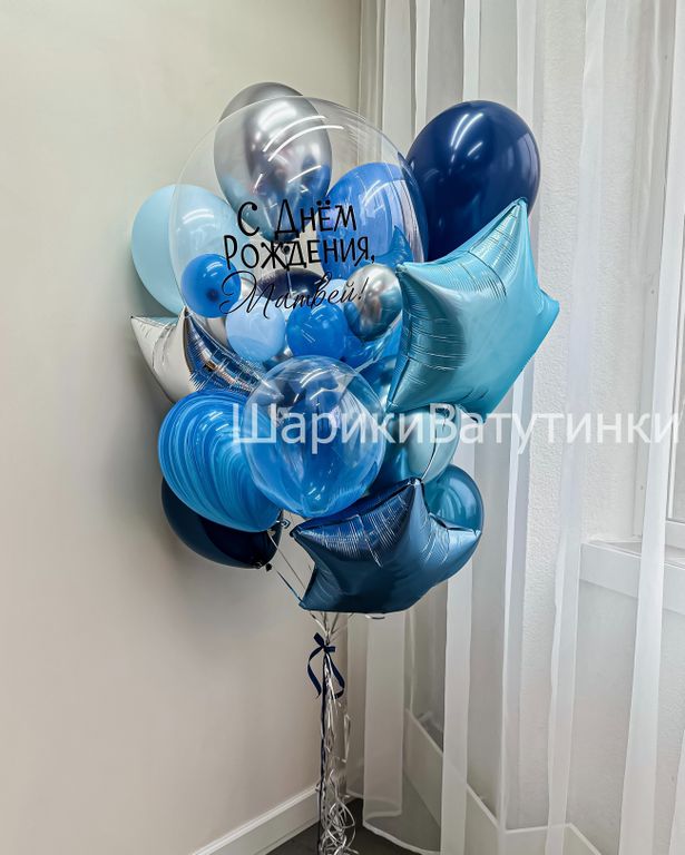 - Баблс с шариками и надписью, 3 звезды, 2 шара хром, 6 шаров без рисунка, 1 шар дабл стафф, 1 шар браш, 2 шара агаты.