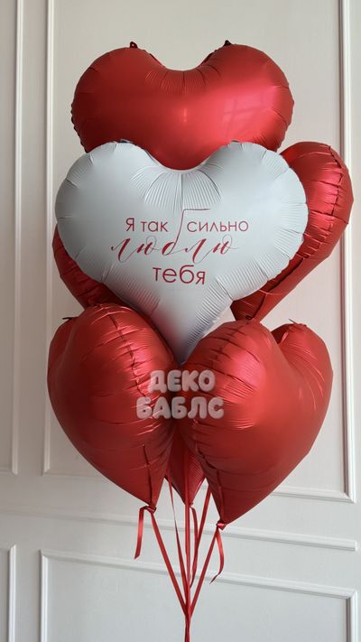 Сет шаров красные и белые сердца с надписью для признания в любви