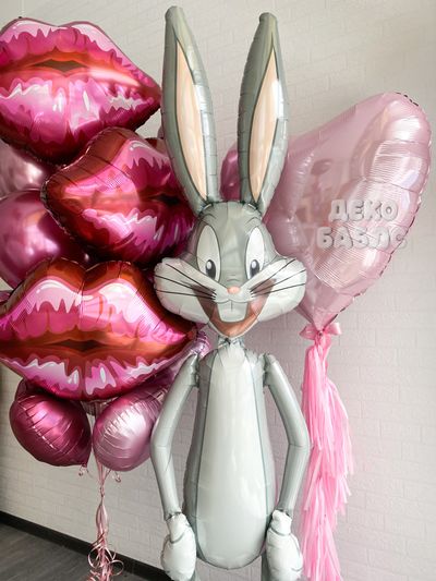 Шар ростовой заяц Багз Банни и фонтан с сердцами и губ