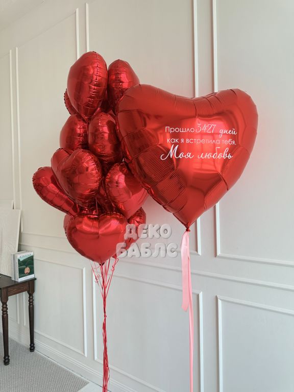 - фонтан из 15 шаров фольгированные красные сердца.