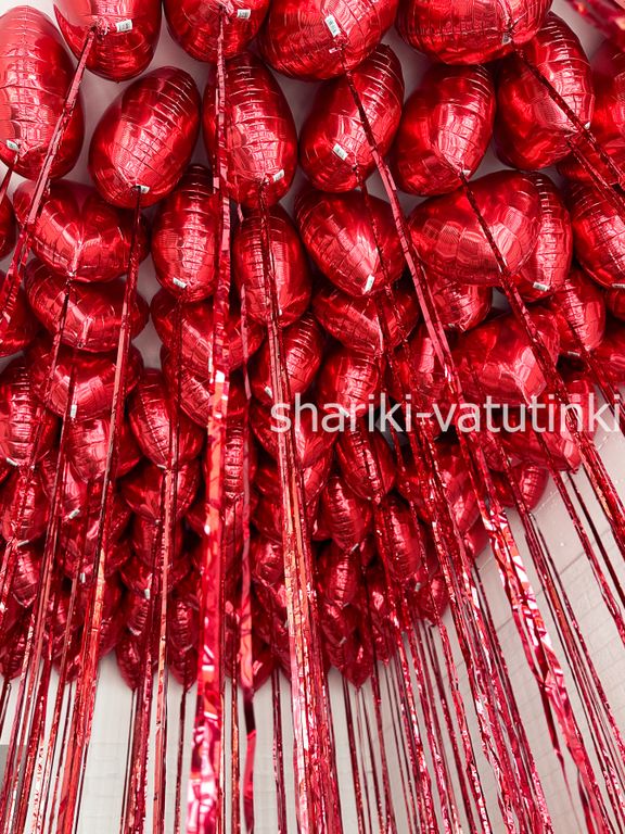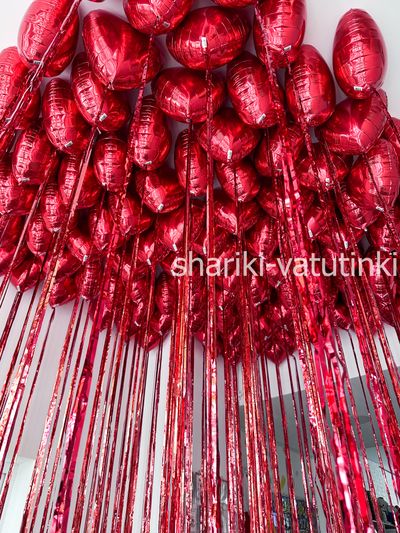 - 150 фольгированных красных сердец с дождиком.