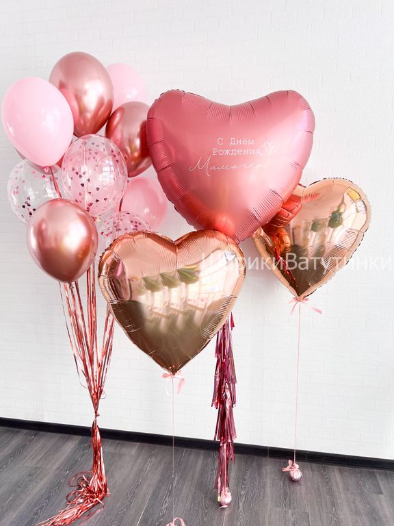 - фонтан из 11 шаров с дождиком (3 с конфетти, 4 хром, 4 однотонных).