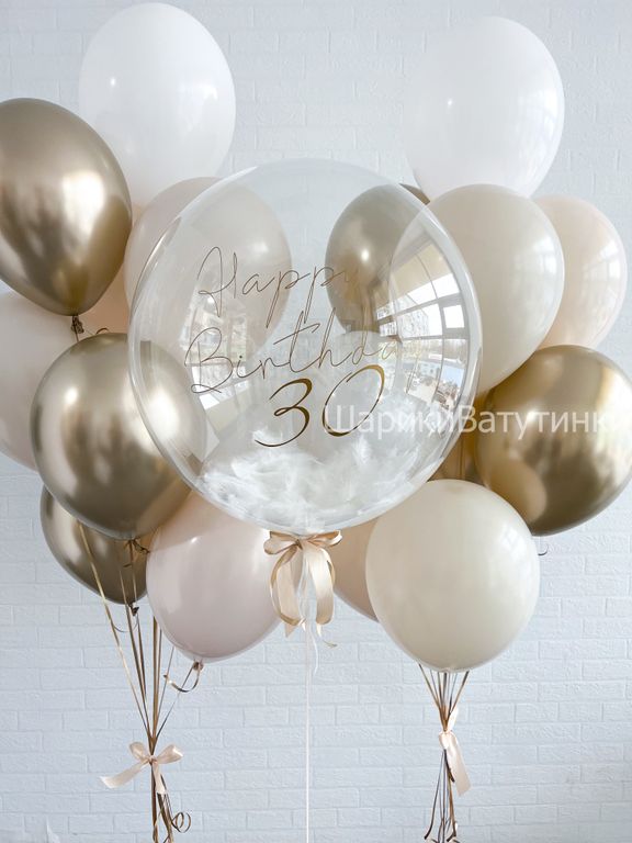 - шар балбес с перьями и надписью;