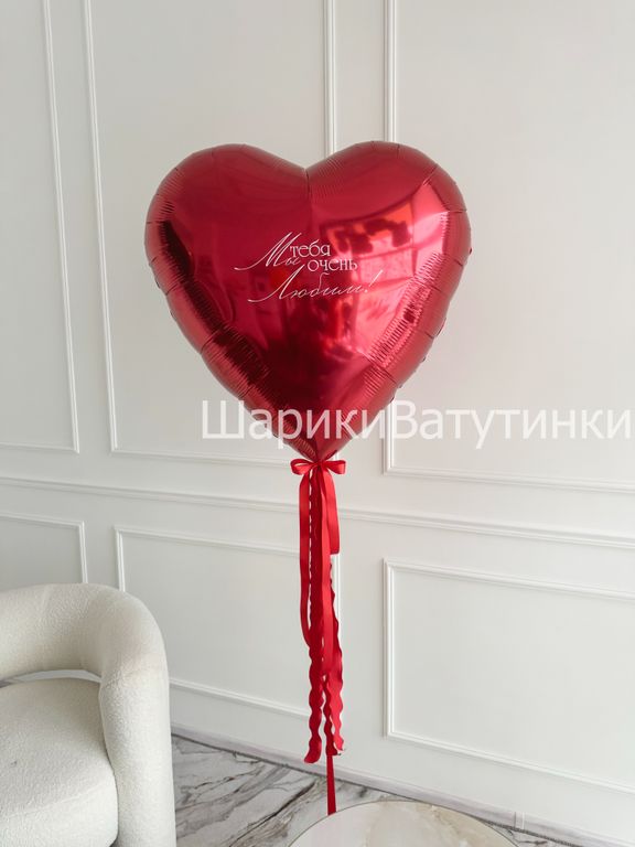 Воздушная фольгированная фигура большое сердце с гелием размером 81см.