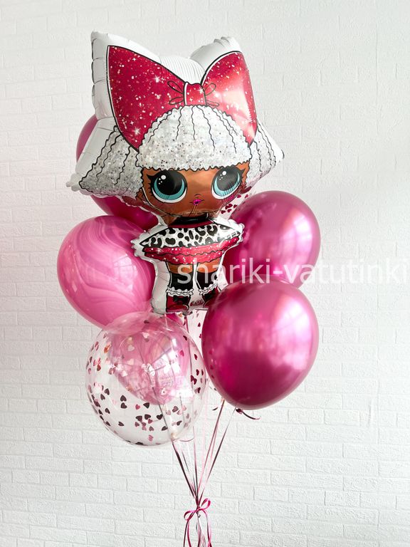 - фонтан из 9 шаров (Лол, 2 шара с конфетти, 2 агат, 4 хром).