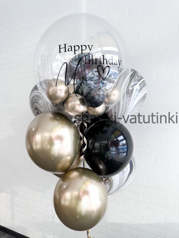 - шар BUBBLES с шариками и надписью, 3 хром, 3 агат, 3 чёрных)