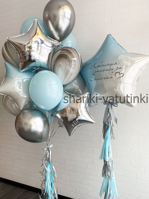 - фонтан из 16 шаров (4 звезды, 4 агат, 4 хром, 4 однотонных).
