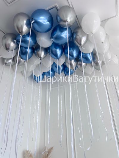 Шары под потолок на атласных лентах (45шт)