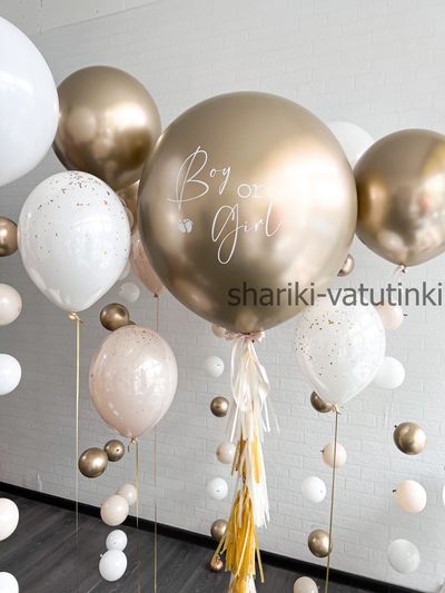 Легкие воздушные шарики парящие на леске станут отличным оформление для самого важного момента для Мамы и Папы, а большой шар с наполнением раскроет самую главную тайну которая не дает покоя молодым родителям!