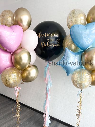 Гендер - шар определение пола с двумя связками (черный с золотом)