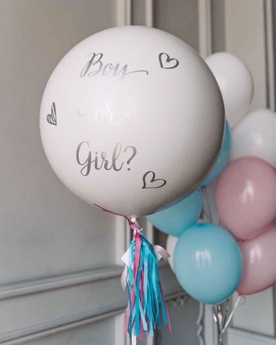 - белый гендер шар сюрприз для определения пола будущего малыша;