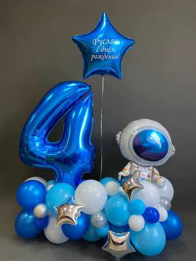 Напольная композиция из шаров с цифрой, фигурой и звездой с надписью