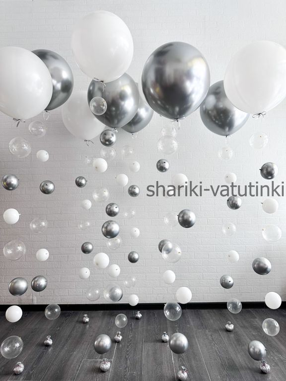 Шары цепочки с пузырями 10шт (белые, серебро)
