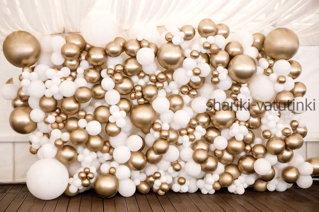 Фотозона из шаров золото с белым