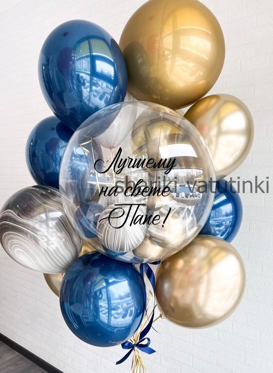 - фонтан из 13 шаров (баблс с мини шариками и надписью, 1 сфера, 2 агат, 4 даблстафф, 5 золото хром).