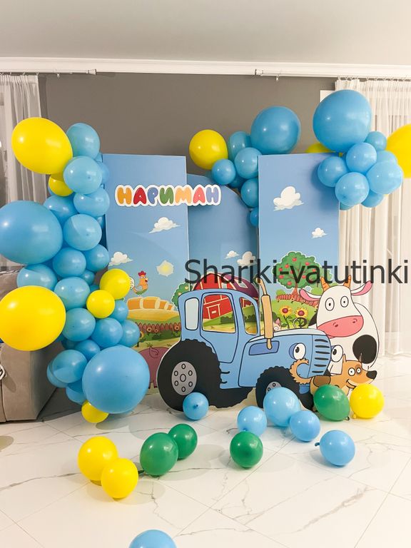 Фотозона из шаров на день рождения мальчику синий трактор