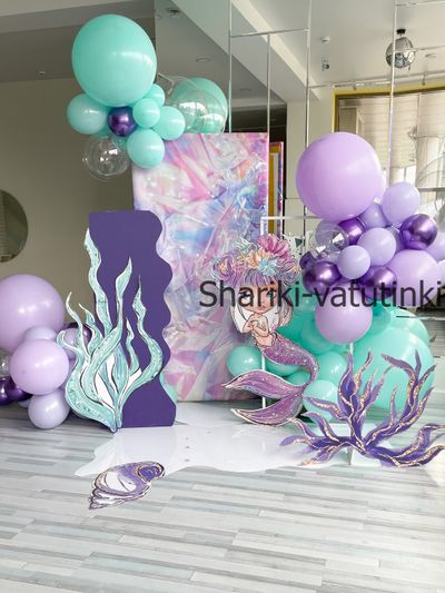 Фотозона с шарами русалочка (морская тема)