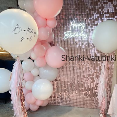 Фотозона пайетки розовая пудра на День Рождения девушки