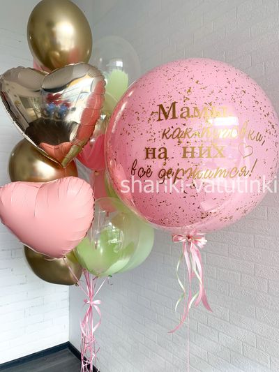 - фонтан из 15 шаров (2 сердца, 6 браш, 3 хром, 4 однотонных).