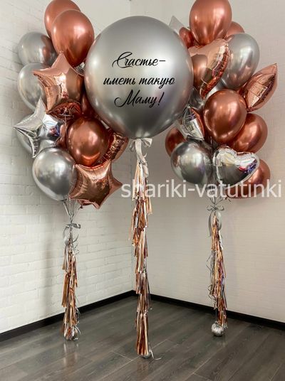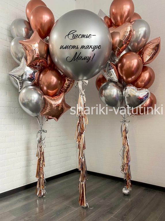 - шар гигант хром с надписью и кисточкой тассел;