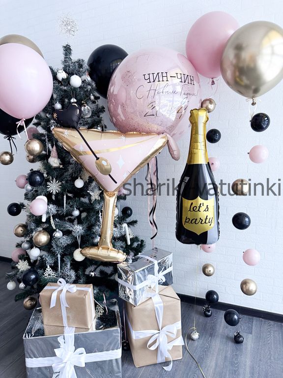 Хрустальный шар в шаре с конфетти и надписью "Чин-Чин 2024"