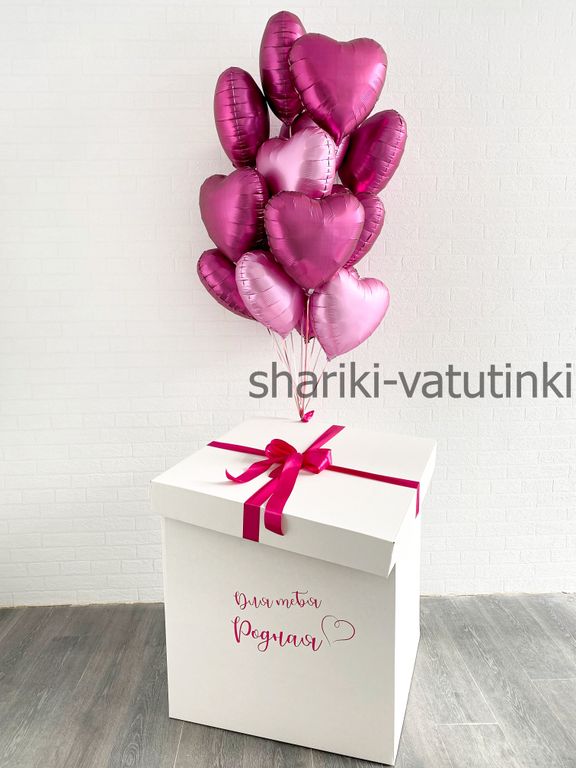 Также в данный набор из шаров Вы можете добавить свой подарок, мы просто разместим его внутрь коробки. Когда коробка будет открываться, из нее поднимутся в воздух шары с гелием, а внутри коробки останется лежать подарок от Вас!