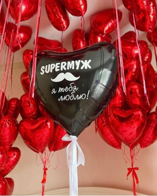 - фольгированное чёрное сердце 80см с индивидуальной надписью;