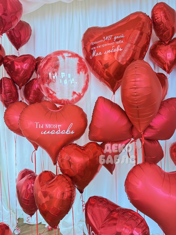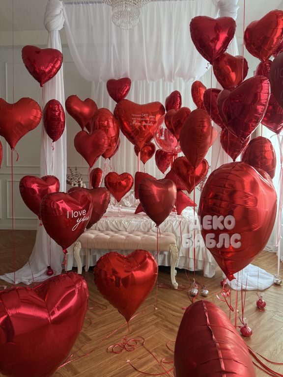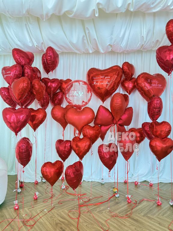Масштабное преображение вашего пространства с помощью десятков парящих гелиевых сердец, создающее незабываемую атмосферу для самого важного признания в Новой Москве.