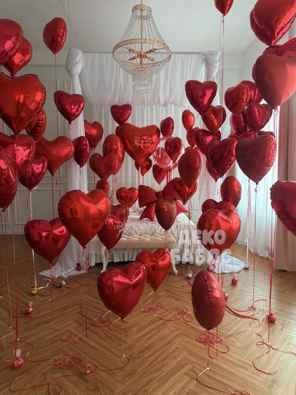 Оформление комнаты шарами-сердцами "Романтический вечер"