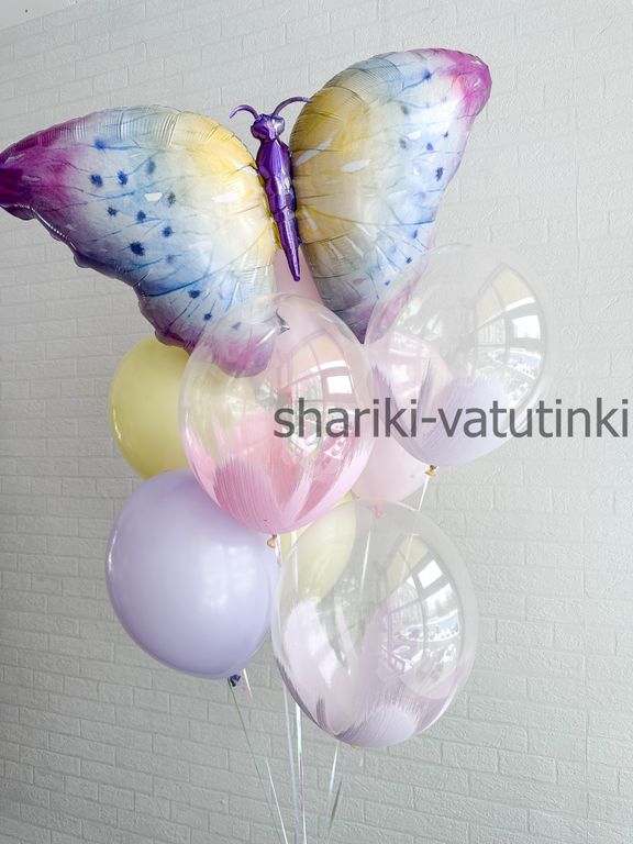 - фонтан из 9 шаров (бабочка, 3 браш, 5 однотонных).
