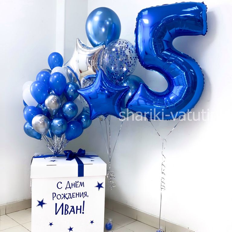 Набор на День Рождения с коробкой сюрприз, цифрой и фонтан (синий)