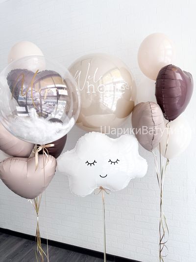 - фонтан из 5 шаров (2 сердца, 3 однотонных).