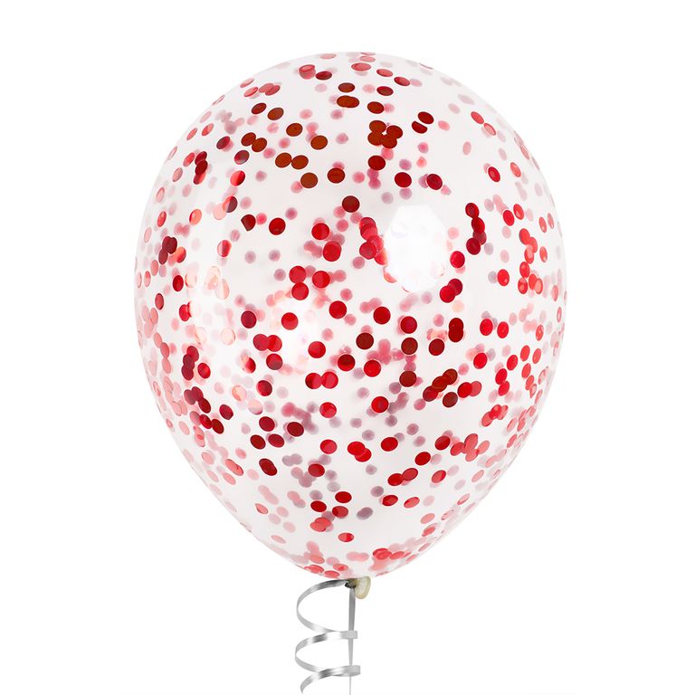 Шары с конфетти красные металлик (круги)