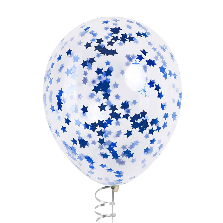 Шары с конфетти синие металлик (звёзды)
