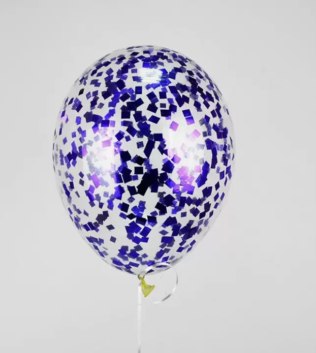 Шары с конфетти фиолетовые металлик (квадраты)