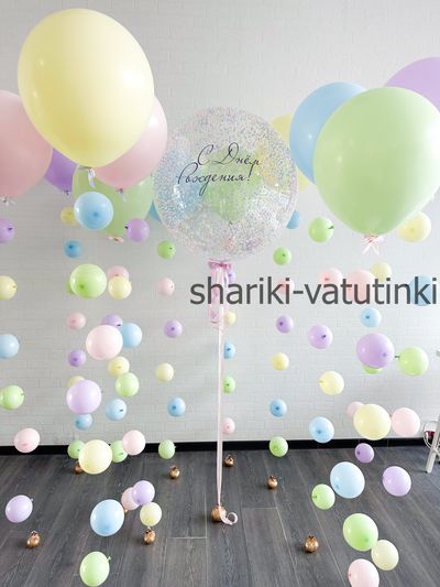 - шар баблс с шариками пенопласт и надписью;