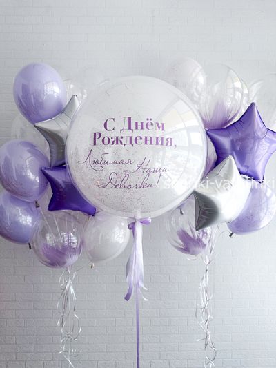 - шар стекляшка с конфетти и надписью;