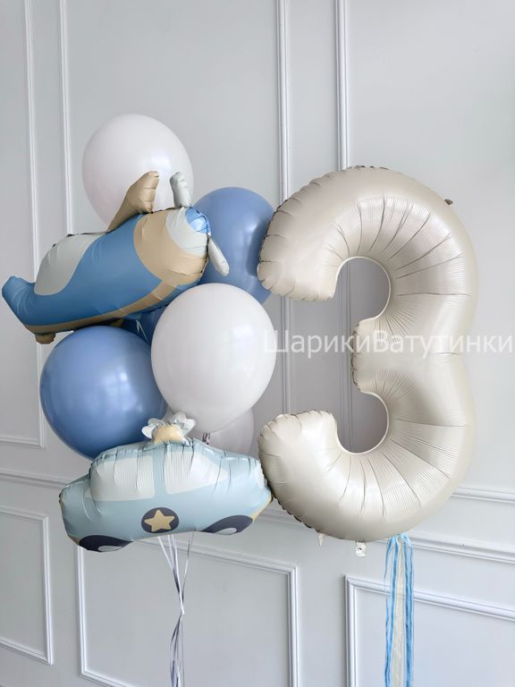 - фонтан из 10 шаров (фигура самолет, фигура машинка, 8 однотонных).