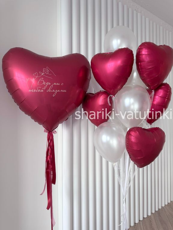 - фонтан из 15 шаров на атласных лентах (5 сердец, 10 жемчужных).