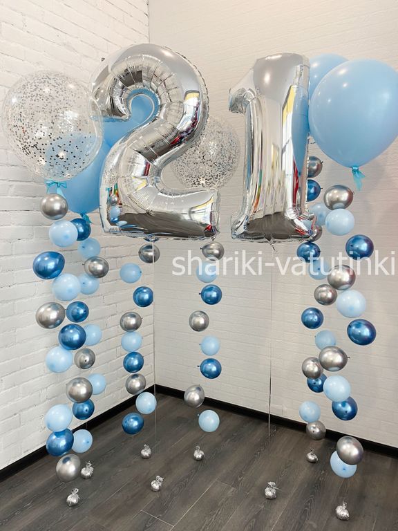 Шары цепочки с пузырями, голубой с серебром и цифрами