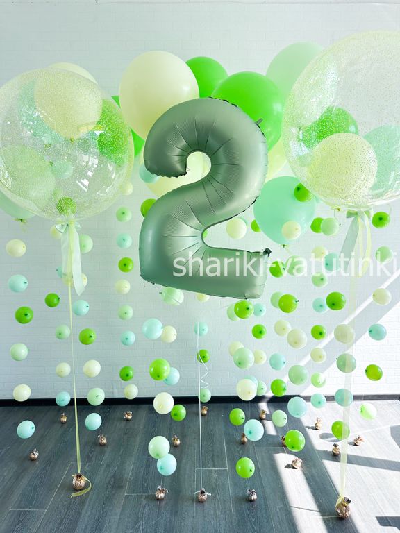 - 15 шаров однотонных цепочки с пузырями (45см).