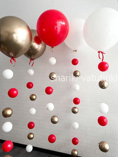 Шары цепочки с пузырями (5 шт), "Красный с золотом"